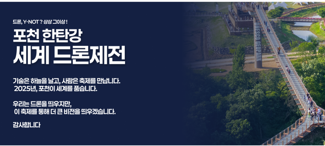 2025 포천 한탄강 세계드론제전은 드론 산업의 가능성과 문화 콘텐츠를 결합하여 새로운 축제 모델을 제시하는 행사입니다.