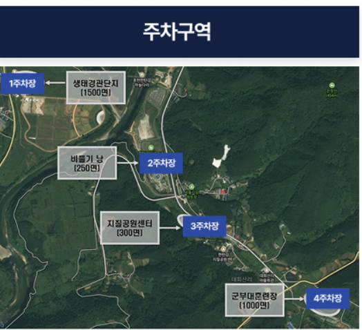 - 행사 기간 혼잡 시간대 분산을 위해 대중교통 또는 셔틀 이용을 권장합니다.