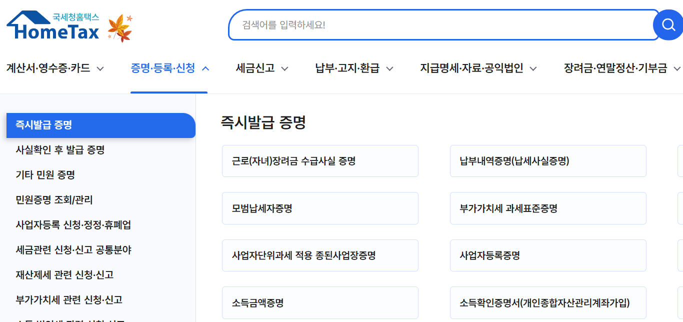 - 홈택스/손택스: 가장 빠른 인터넷 발급 방식