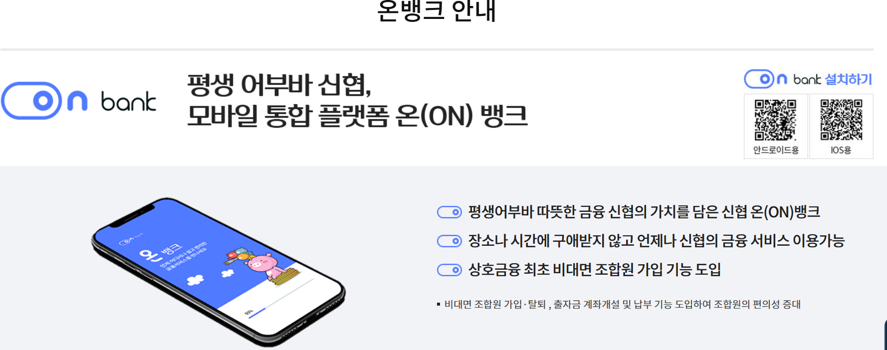 💡 TIP. 스마트폰에서도 ‘신협온(On)뱅크’ 앱을 설치하면 동일한 서비스를 이용할 수 있습니다.