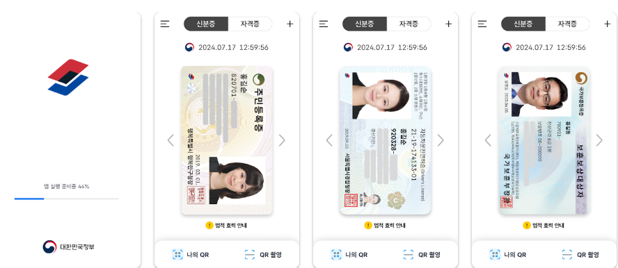 실물 주민등록증이나 운전면허증과 동일한 법적 효력을 가지며, 다양한 공공·민간기관에서 본인 확인 수단으로 사용할 수 있습니다.