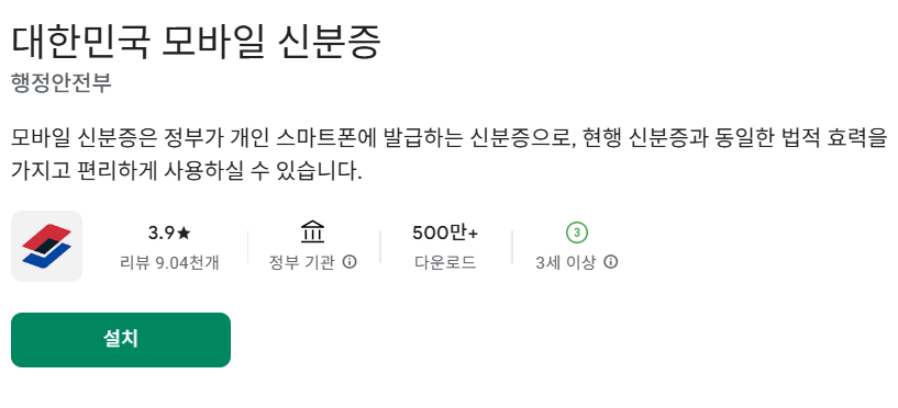 - 앱 이름: 모바일 신분증 (행정안전부 공식 앱)