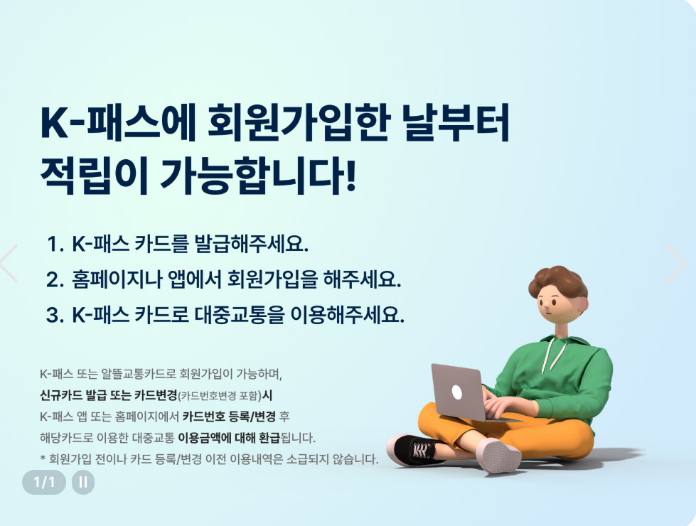 - 회원가입: K-PASS 누리집에서 본인인증 후 가입
