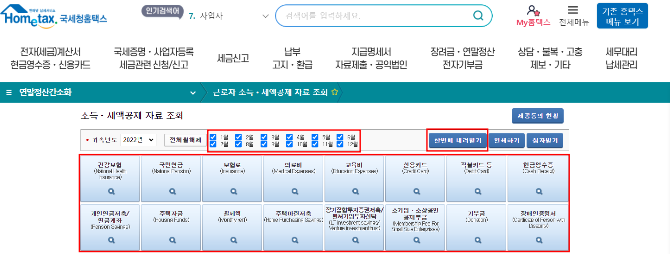 연말정산간소화서비스홈페이지에서는 다음과 같은 항목을 확인할 수 있습니다.