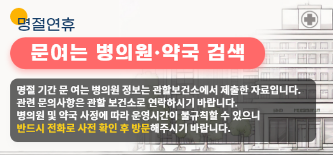 명절연휴 문여는 병의원,약국 검색