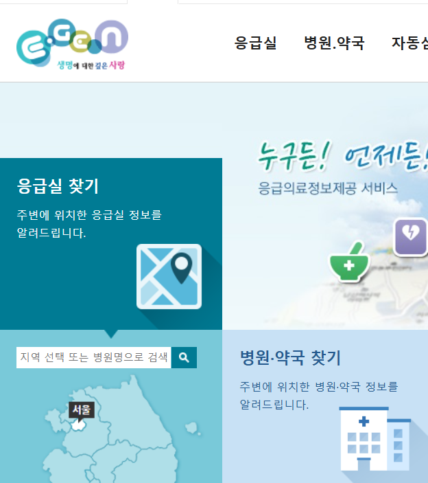 • 응급의료포털 : www.e-gen.or.kr에서 위치 기반 검색 가능