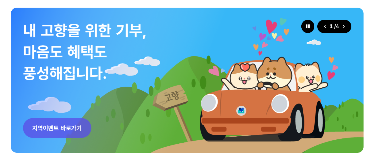 가장 간편한 방법은 ‘고향사랑e음’ 홈페이지를 통한 온라인 기부입니다.