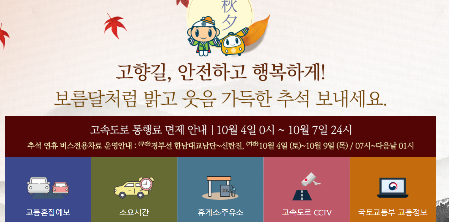 2025년 명절 추석 고속도로 통행료 면제 기간 0원 알아보기