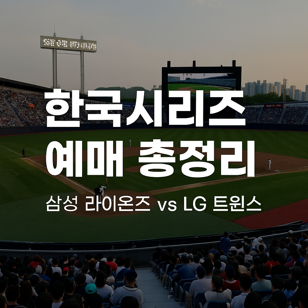 올해 한국시리즈는 LG 트윈스와 한화 이글스의 맞대결로 확정되었으며, 예매는 지정된 플랫폼에서 전량 온라인 방식으로 진행됩니다.